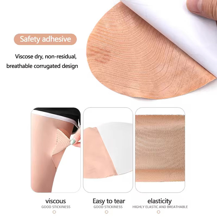Purtare zilnică sub fuste și rochii. Plasați pe zona coapselor. Design autoadeziv. Reutilizabil. Se spală sub apă călduță curgătoare. Avertisment: Evitați utilizarea pe pielea rănită.