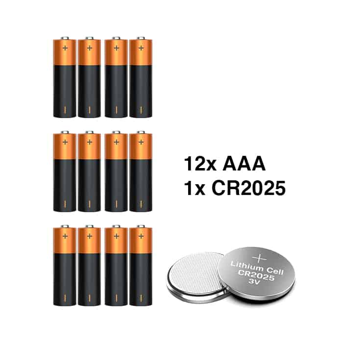 | Pachetul include: | 12 x baterie AAA + 1 x baterie CR2025 |