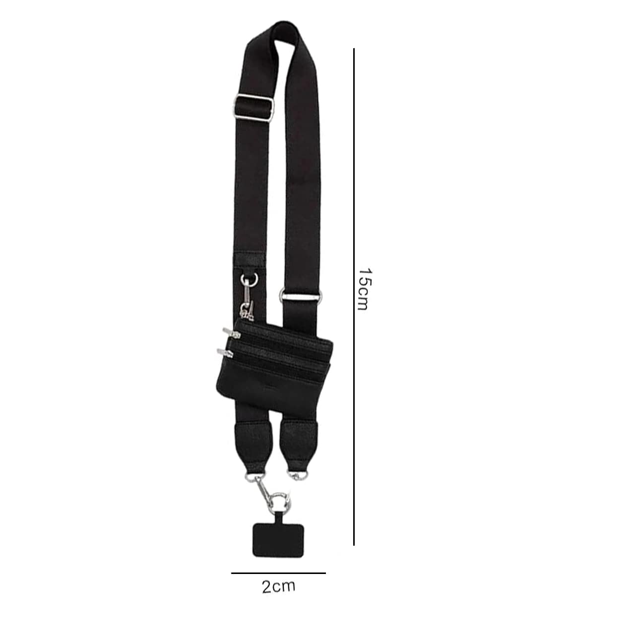 101 - 147 cm (lungime reglabilă a curelei), 4 cm (lățimea curelei), 11.5 x 9 cm (dimensiunea portofelului)