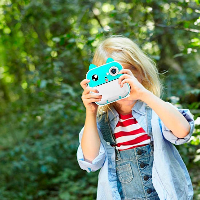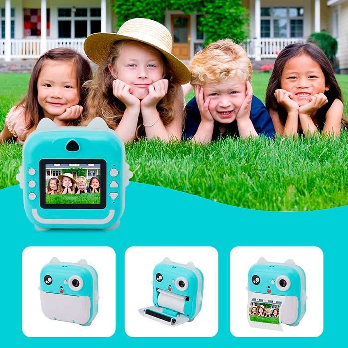 Potrivită pentru fotografii statice, video, print, autofocus. Permite imprimarea instantanee a fotografiilor. De asemenea, acceptă carduri de memorie și vă permite să imprimați fotografii de pe telefonul mobil sau de pe cameră. Încărcați camera prin cablul USB inclus. Timpul de încărcare este de 3,5 ore. Acest lucru este suficient pentru a face mai mult de 2000 de fotografii și a înregistra videoclipuri timp de 6 ore.