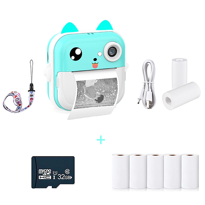 | În pachet: | 1x cameră, 1x cablu USB, 2x rolă de printare + 5 role suplimentare gratuite, 1x curea de încheietură, 1x card Micro SD de 32 GB |