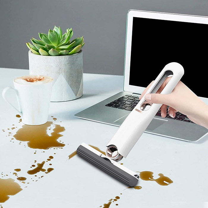 Aparatul de curățat manual are un burete care absoarbe o cantitate mare de lichid extrem de rapid, așa că îl puteți folosi pentru a curăța sau șterge lichide!