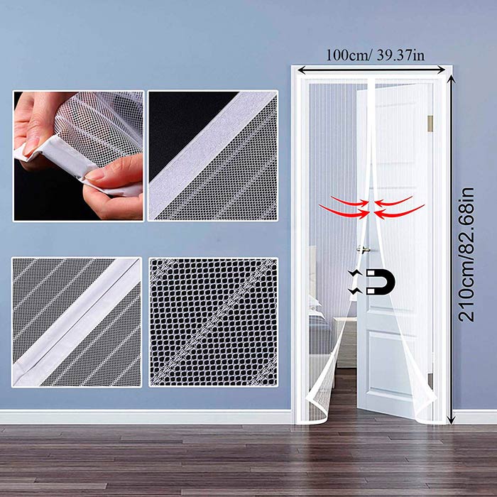 Plasa țesută strâns pentru țânțari, muște și alte insecte are o închidere magnetică care se închide automat când intrați sau ieșiți din casa dumneavoastră! Bucurați-vă de ventilație fără griji în timpul zilei și seara!