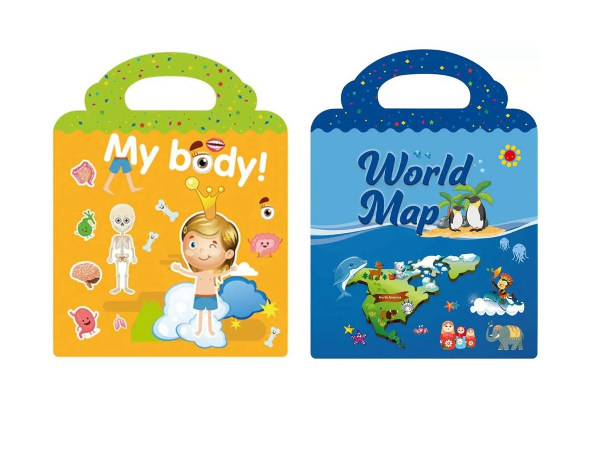 Copiii învață despre părțile corpului și caracteristicile diferitelor continente de pe Pământ într-un mod distractiv! Aceste cărți, conțin fiecare 3 pagini cartonate, unde copii pot lipi stcikerele autoadezive. În timp ce se joacă, își dezvoltă activ abilitățile motorii fine și abilitățile lingvistice!