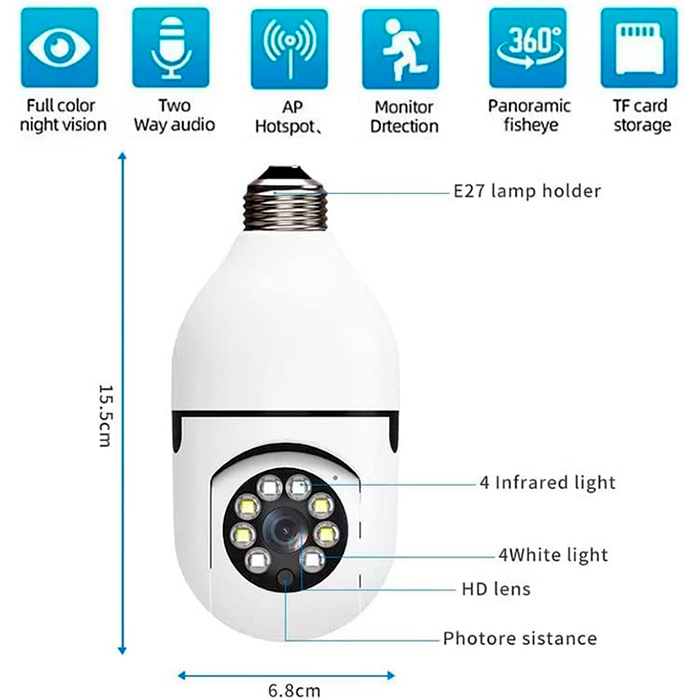 Introduceți cardul SD (nu este inclus) în cameră. Conectați camera la smartphone. Descărcați aplicația YI IoT și urmați instrucțiunile din aplicație. Aplicația vă permite să monitorizați acțiunea live în fața camerei și să mutați camera în toate cele 4 direcții (stânga, dreapta, sus, jos) prin intermediul aplicației. De asemenea, aplicația salvează automat înregistrarea pe telefon atunci când camera detectează mișcare. Primiți o alertă pe telefon când camera detectează mișcare. Când camera detectează mișcare, salvează automat filmările în aplicație și veți primi o alertă. Puteți vizualiza videoclipul în aplicație așa cum este stocat pe cardul SD. Sau, dacă utilizați iOS, îl puteți seta și să stocheze videoclipuri în Cloud. Camera și aplicația permit, de asemenea, comunicarea audio bidirecțională. Produsul ViewCamera acceptă înregistrarea de noapte și de zi. Are capacitatea de a detecta automat mișcarea și de a vă alerta pe telefon. Produsul acceptă, de asemenea, conectivitate wireless și conversație audio bidirecțională în timp real. Un card SD de 32 GB este recomandat pentru 4 – 8 zile, 64 GB este suficient pentru 8 – 12 zile și 128 GB este suficient pentru 12 – 20 de zile. |